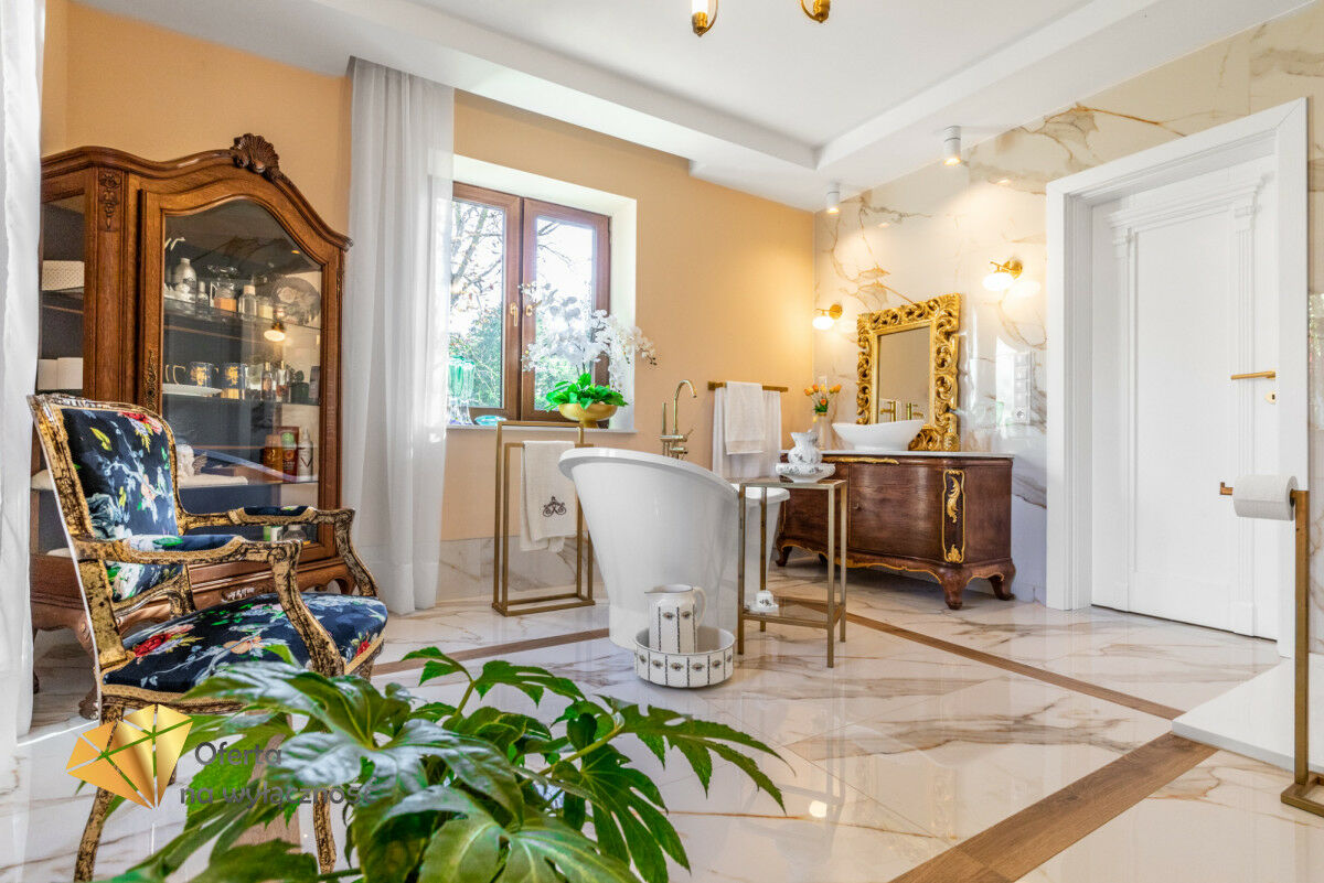 - wyposażenie: starannie wyselekcjonowane elementy wyposażenia wolnostojącego oraz elegancka zabudowa kuchenna wykonana na zamówienie