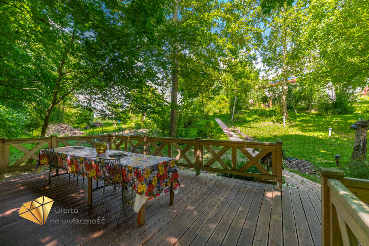 Oferta dostępna wyłącznie za pośrednictwem Franczewska Nieruchomości.Na sprzedaż urokliwy dom o niebanalnym wnętrzu, położony na przestronnej działce, która jest oczkiem w głowie obecnych właścicieli. Rustykalny ogród, pełen jeżówek, dalii, piwonii, malw i róż, przywołuje na myśl klimat ogrodów naszych babć. Część działki stanowi malowniczy wąwóz pośrodku którego przepływa strumyk. Jest to z całą pewnością nieruchomość dla koneserów, którzy docenią wygodę i prostotę życia z dala od zgiełku wielkiego miasta zachowując przy tym globalną łączność dzięki doskonałemu połączeniu internetowemu.